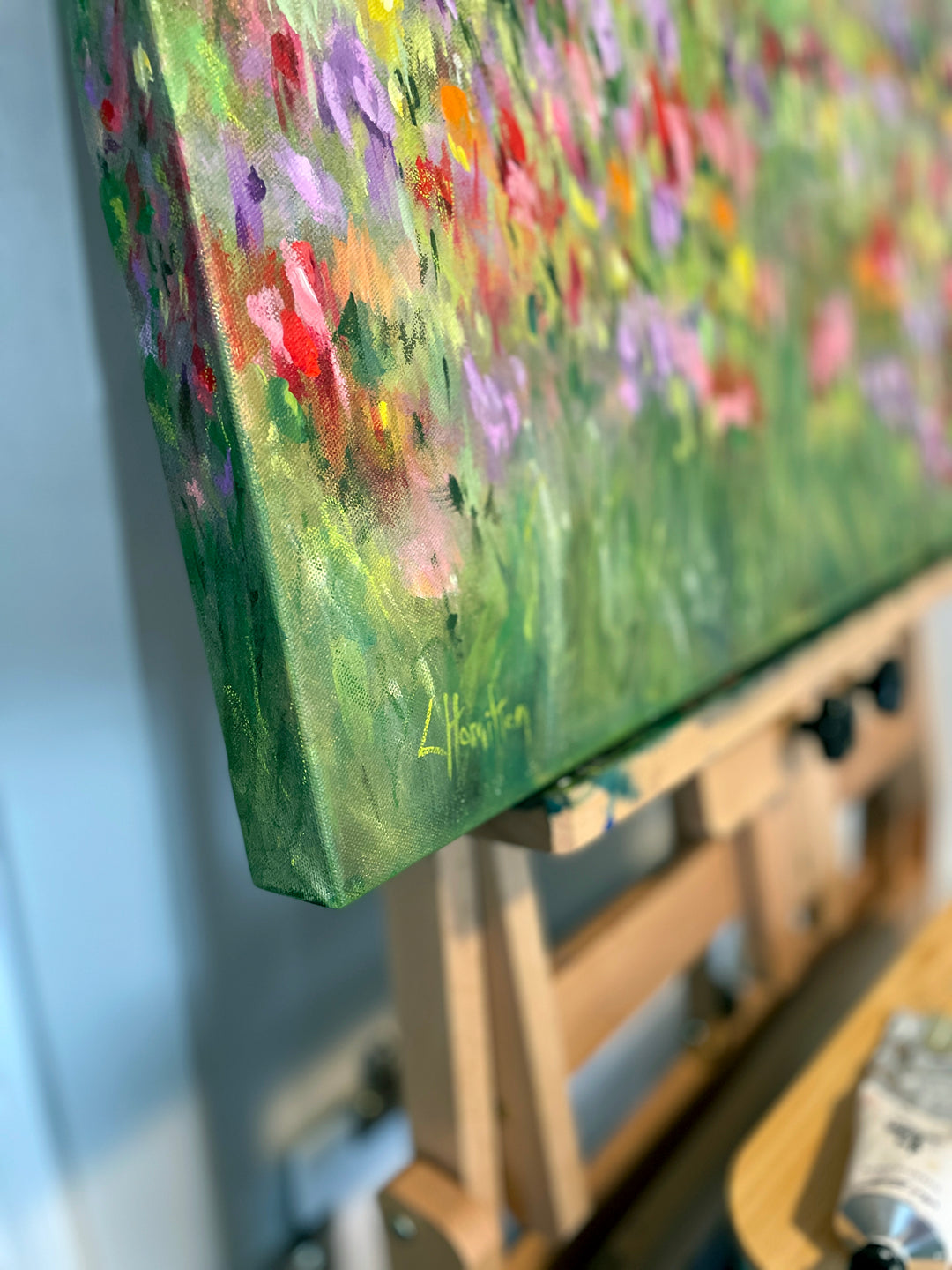 Lucinda Hamilton is a multi-media artist inspired by the nature that surrounds her, be it her backyard flower garden or the coastal life of New England. Lucinda’s paintings are vibrant and colorful, blending an element of abstraction into each piece