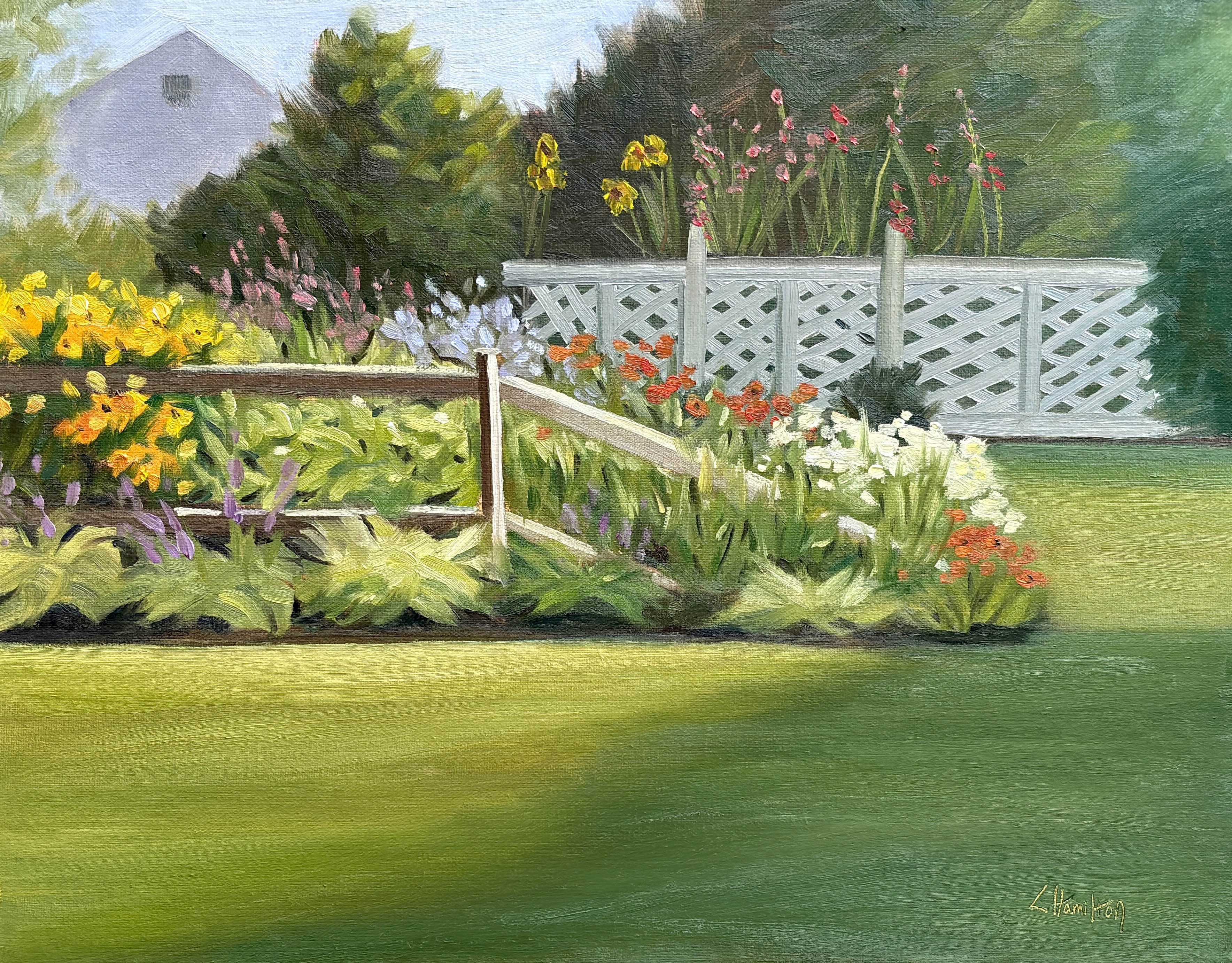 Lucinda Hamilton is a multi-media artist inspired by the nature that surrounds her, be it her garden or the coastal life of New England. Her paintings are vibrant and colorful, blending an element of abstraction into each piece